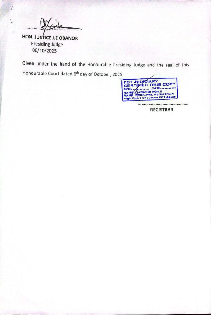 Justice J.E. Obanor of the FCT High Court issued the interim order upon hearing the motion Ex parte brought before it by Incorporated Trustees of the National Youth Council of Nigeria and Sukubo Sara-Igbe Sukubo on behalf of the National Executives of NYCN against the Respondents in the matter including Ademola Gbenga, Okechukwu Nnamene, Abel Abaji, Alex Allen Akin and Hassan Mamman.